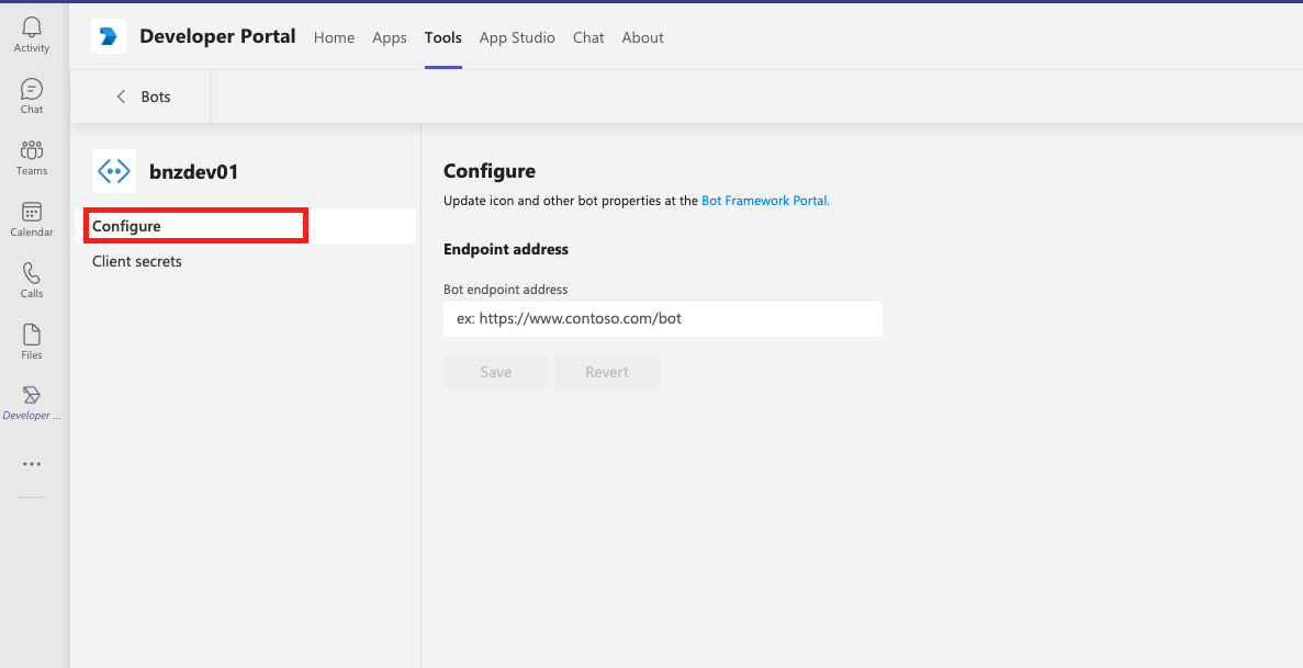 Configuring messaging endpoint for the Microsoft Bot Framework bot
